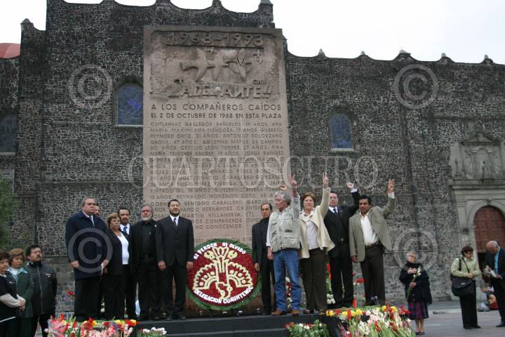 MEXICO,D.F.,02OCTUBRE2007.- En la plaza de la Tres Culturas en Tlatelolco se realizó un evento conmemorativo por el 02 octubre, por parte del Gobierno del Distrito Federal en donde asistió Martí Batres, secretario de Desarrollo Social, José Muñoz Soria, delegado de la Cuahtémoc, Salvador Martínez De lla Rocca conocido como "el pino" y Helena Cepeda de León, secretaria de Cultura del GDF. FOTO:ROCIO ORTIZ/CUARTOSCURO.COM