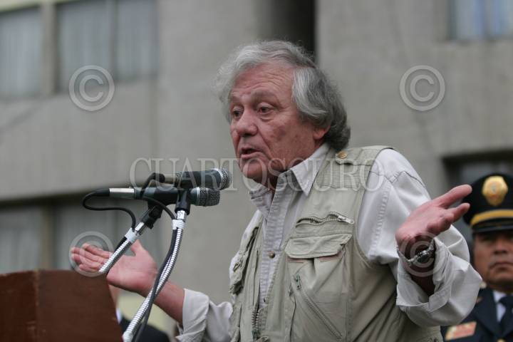 MEXICO,D.F.,02OCTUBRE2007.- En la plaza de la Tres Culturas en Tlatelolco se realizó un evento conmemorativo por el 02 octubre, por parte del Gobierno del Distrito Federal en donde asistió Martí Batres, secretario de Desarrollo Social y José Muñoz Soria, delegado de la Cuahtémoc. En la imagen y Salvador Martínez De lla Rocca conocido como "el pino" durante su discurso. FOTO:ROCIO ORTIZ/CUARTOSCURO.COM