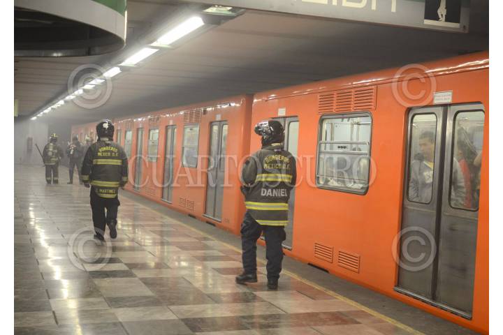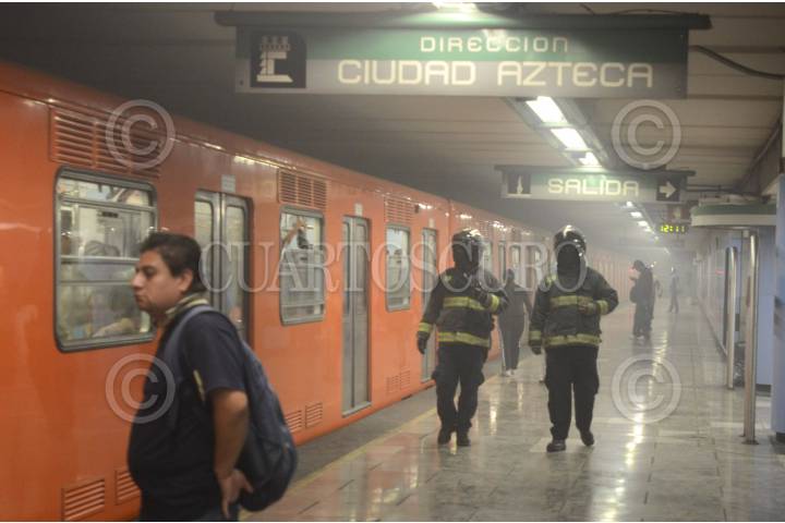 ECATEPEC, ESTADO DE MÉXICO, 06FEBRERO2013.- Una fuerte movilización de bomberos y policías, se registro en la estacion del Metro Garibaldi tras el estallido e incendio de un neumatico de uno de los vagones. FOTO: LUIS CARBAYO /CUARTOSCURO.COM