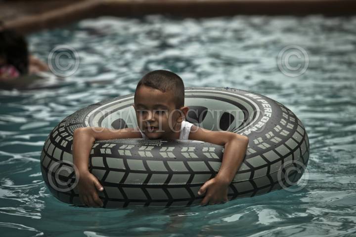 CULIACÁN, SINALOA, 17AGOSTO2014.- Un niño nada con su llanta inflable en en el balneario de Imala, cientos de niños mañana regresan al nuevo ciclo escolar, familias aprovechan el ultimo día de vacaciones. FOTO: RASHIDE FRíAS /CUARTOSCURO.COM