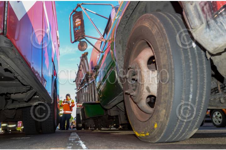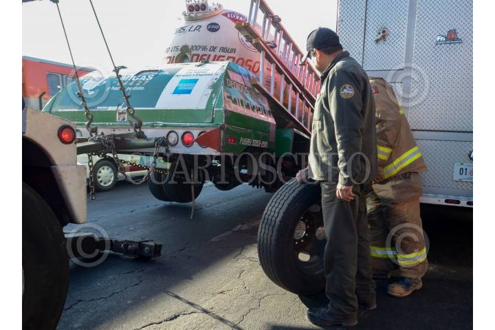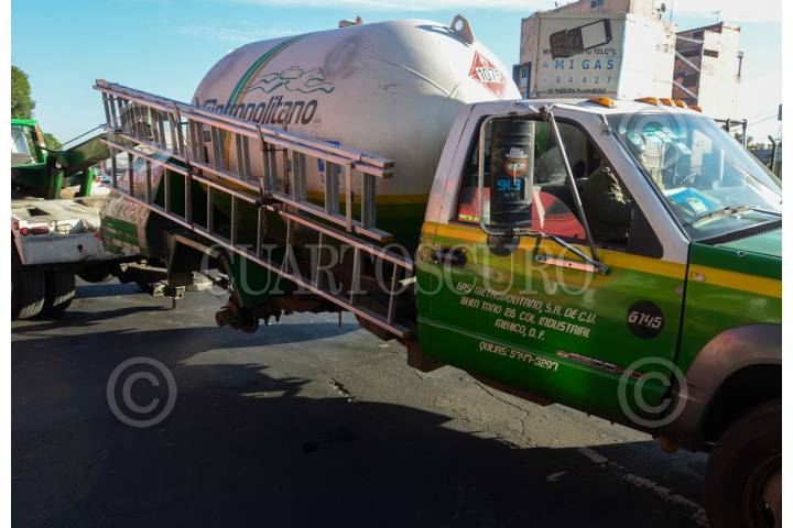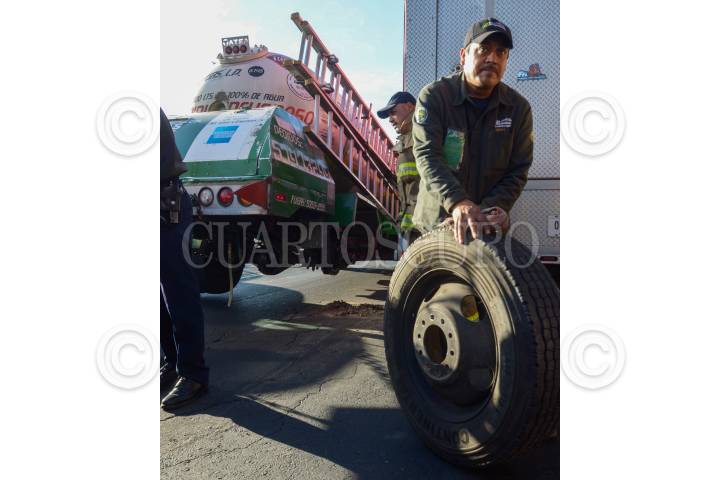 MÉXICO, D.F., 28ENERO2015.- La llanta trasera de una pipa se salio cuando circulaba en la av Tlalpan a la altura de Xola golpeando a una mujer y un microbus. FOTO: ARMANDO MONROY /CUARTOSCURO.COM