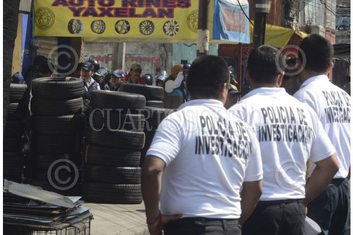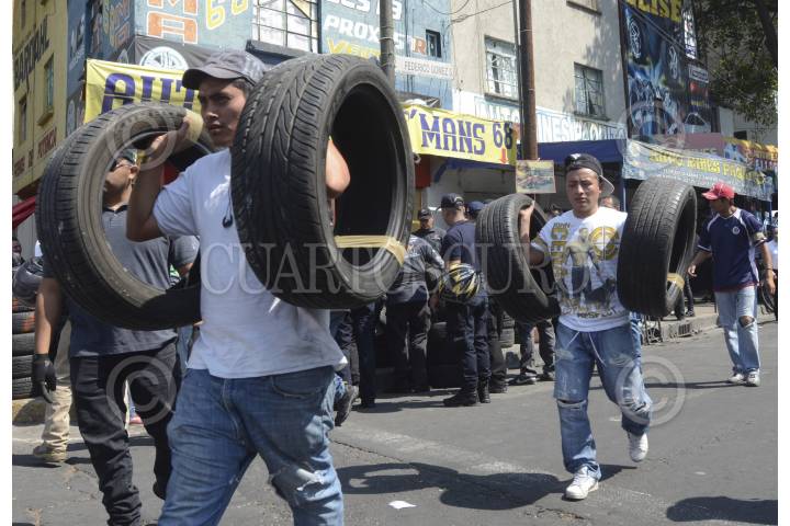 MÉXICO, D.F., 19FEBRERO2015.- Trabajadores del SAT en conjunto con la Procuraduria General del Distrito Federal y la Secretaria de Seguridad Publica del DF realizaron un operativo en la colonia Doctores para el decomiso de llantas y rines sin factura a negocios de la zona. FOTO: ARMANDO MONROY /CUARTOSCURO.COM