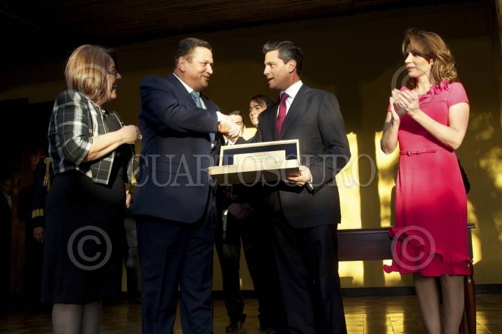 SAN JOSÉ, COSTA RICA, 20FEBRERO2013.- Enrique Peña Nieto, presidente de México, recibió la llave de la Ciudad de esta capital, que le fue entregada por el Alcalde Johnny Araya Monge, y fue declarado Huésped de Honor de San José. El Mandatario mexicano acudió acompañado de su esposa Angélica Rivera de Peña. FOTO: PRESIDENCIA /CUARTOSCURO.COM