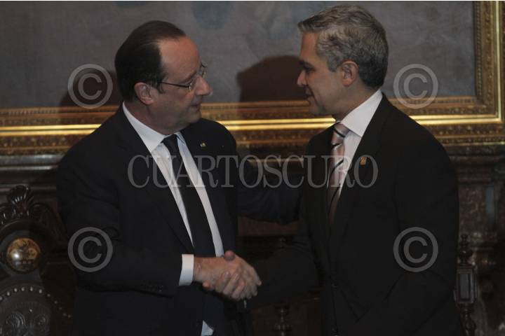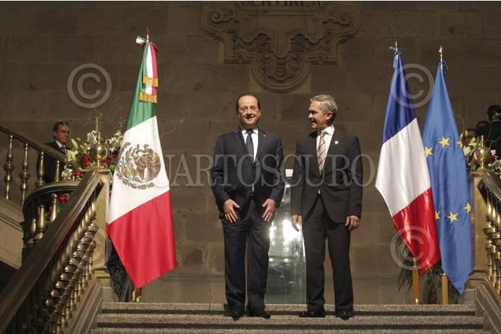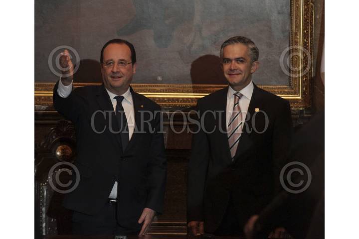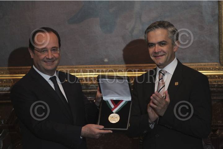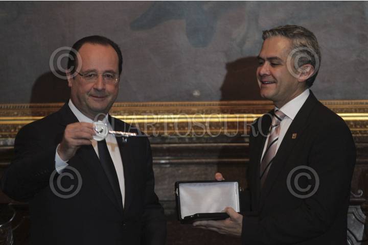 MÉXICO, D.F., 11ABRIL2014.- Francois Hollande, Presidente de Francia recibió por parte del Jefe de Gobierno Miguel Ángel Mancera las llaves de la ciudad como huésped distinguido, la ceremonia se llevó a cabo en el salón de Cabildos del Antiguo Palacio del Ayuntamiento. FOTO: MOISÉS PABLO /CUARTOSCURO.COM