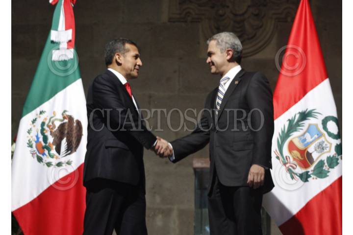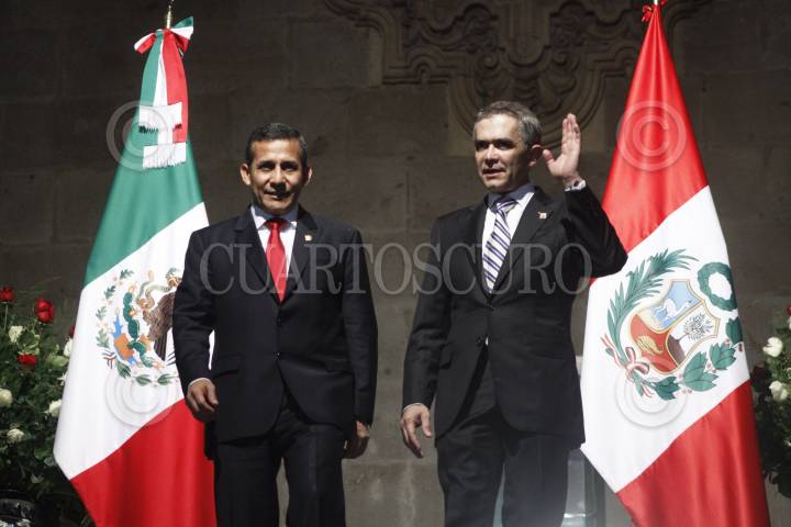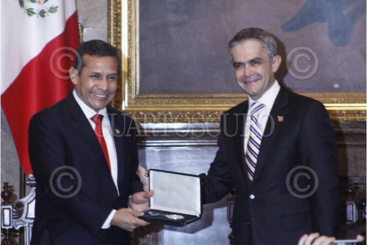 MÉXICO, D.F., 18JULIO2014.- Ollanta Humala, presidente del Perú, recibió las llaves de la ciudad por parte del Jefe de Gobierno Miguel Ángel Mancera, en salon de cabildos del Antiguo Palacio del Ayuntamiento. FOTO: MOISÉS PABLO /CUARTOSCURO.COM
