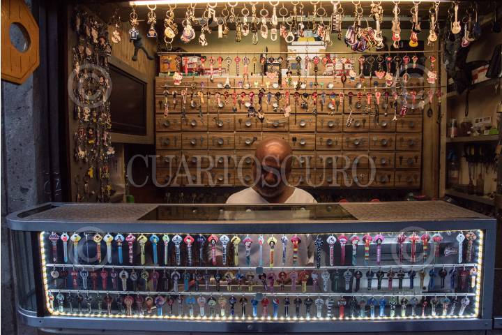 CIUDAD DE MÉXICO, 20JUNIO2017.- Un cerrajero en la zona centro, decoró su puesto con diversas luces y llaves con dibujos. FOTO: TERCERO DÍAZ /CUARTOSCURO.COM