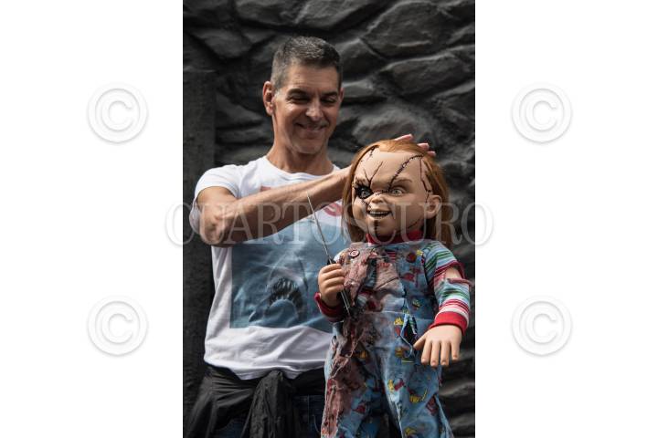 CIUDAD DE MÉXICO, 03NOVIEMBRE2018. Don Mancini, director y creador del famoso personaje de terror "Chucky", encabezó la entrega de las llaves de la Casona de La Feria de Chapultepec como parte de las actividades del Mórbido Fest 2018. FOTO: MARIO JASSO /CUARTOSCURO.COM