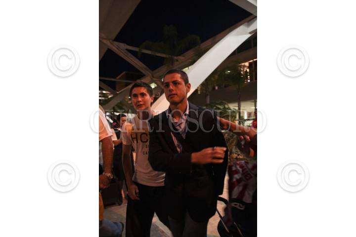 TUXTLA GUTIERREZ, CHIAPAS, 05MARZO2010.- El club de fútbol, Chivas de Guadalajara arribo via aérea a la capital chiapaneca para sostener el día de mañana un encuentro contra Jaguares de Chiapas dentro de la jornada nueve del torneo bicentenario. En la imagen Javier "Chicharo" Hernández corrió hasta llegar a su trasporte ya que fue perseguido por fanáticos. FOTO: MARCO POLO GUZMÁN HERNÁNDEZ/CUARTOSCURO.COM