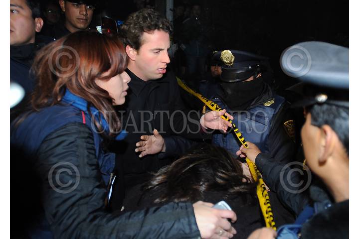 MÉXICO, D.F., 11ENERO2010.- Familiares del empresario, Miguel Saba quién perdió la vida ayer por la noche en un accidente en helicoptero, llegaron al lugar de los hechos, impidiendole el paso policias que resguardaban la zona. FOTO: LUIS CARBAYO/CUARTOSCURO.COM