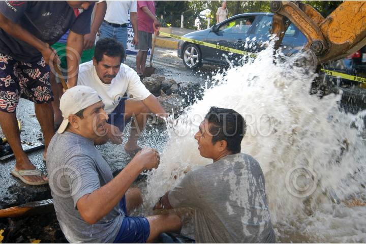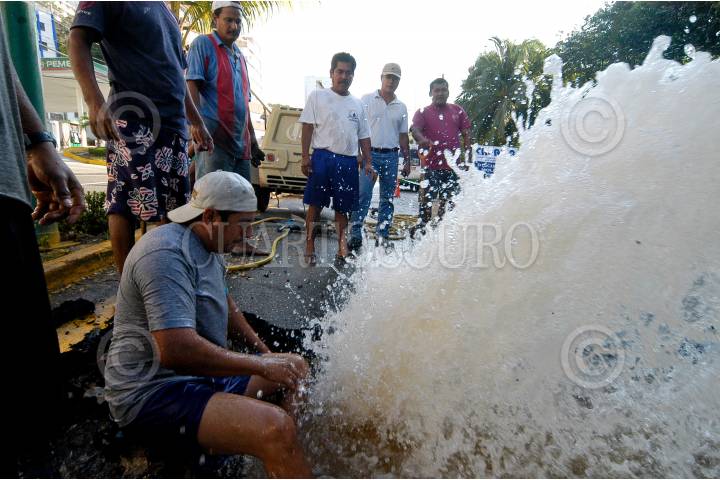 ACAPULCO, GUERRERO, 22ENERO2010.- Una fuerte fuga de agua ocasiono que cerraran la avenida costera Miguel Alemán ya que se un dio la mitad de la carretera a la altura de la playa de Manzanillo; llegaron personal de la dirección de agua potable para reparar la fuga que duro mas de 6 horas. FOTOS: BERNANDINO HERNANDEZ/CUARTOSCURO.COM