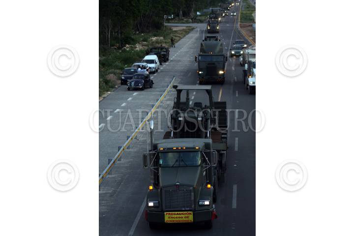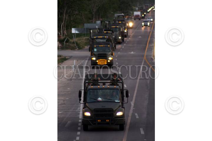 MERIDA, YUCATAN, 17JUNIO2010.- El día de hoy a las 8:30 pm llego a la ciudad de Mérida el convoy del ejercito mexicano para apoyo del plan de contigencia DN-3 en caso de huracán; aproximadamente llegaron unos 25 vehículos y 60 elementos del Agrupamiento de Ingenieros en Casos de Desastres Naturales. FOTO: FRANCISCO BALDERAS/CUARTOSCURO.COM