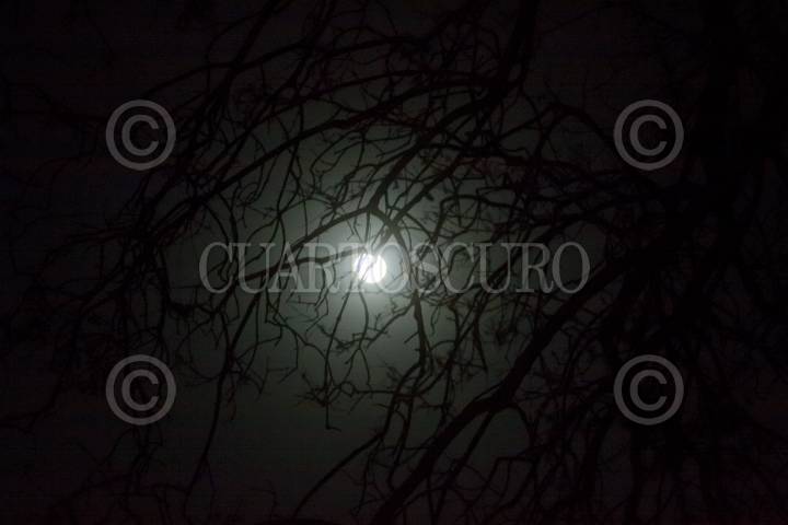 MÉXICO, D.F., 12ABRIL2014.- La luna brilla con gran intensidad entre el ramal de un árbol en la ciudad. FOTO: MOISÉS PABLO /CUARTOSCURO.COM