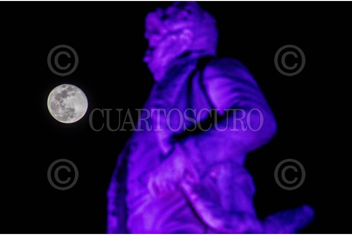 CIUDAD DE MÉXICO, 02MARZO2018.- Esta noche se observo el plenilunio, o luna llena, en algunos puntos de la ciudad gracias a un cielo despejado. En el monumento a la Revolución, algunas personas se ayudaron de telescopios para observarla mejor. En diversas culturas, la lunas llenas están asociadas con mitos y fenómenos mágicos, hay quien lo asocia con insomnio temporal, demencia (de donde se desprende el término lunático) y algunas propiedades de la hechicería y la licantropía. Este fenómeno sucede cuando la tierra se sitúa exactamente entre el sol y la luna en un ángulo de 180 grados, permitiendo que el satélite se ilumine al 100 por ciento. FOTO: JUAN PABLO ZAMORA /CUARTOSCURO.COM