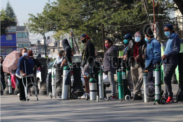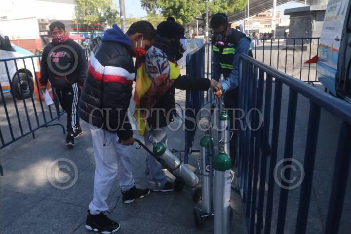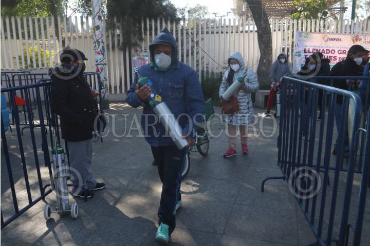 Un hombre originario de Jolalpan, Puebla, viajó hasta este municipio para llenar dos tanques de oxígeno.