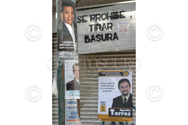MÉXICO, D.F., 07JUNIO2009.- A pesar del anuncio que prohíbe tirar basura, algunos partidos políticos llenan de propaganda política las calles de la colonia Tabacalera en la delegación Cuahutemoc. FOTO: RICARDO CASTELAN/CUARTOSCURO.COM