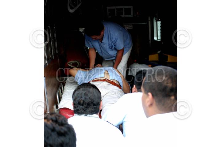 VILLAHERMOSA, TABASCO, 28ABRIL2006.- Un empleado del H. Congreso del Estado recibio un para respiratorio mientras que se llevaba a cabo la sesion solemne de clausura de seión ordinaria, por lo que fue intervenido urgentemente por paramedicos de la paramedica Cruz Roja. FOTO: Marco Polo Guzmán/CUARTOSCURO.COM