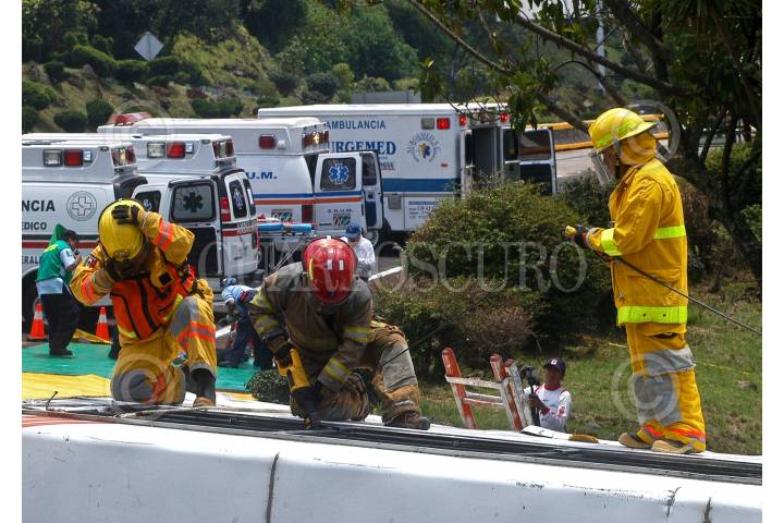 MÉXICO, D.F., 05AGOSTO2009.- En el kilometro 70 de la carretera México - Cuernavaca, elementos de CAPUFE en coordinación con la Cruz Roja de Morelos, Bomberos de Morelos y autoridades de este estado llevaron a cabo el simulacro de rescate de lesionados y muertos en volcadura de autobús de pasajeros. FOTO: LUIS CARBAYO/CUARTOSCURO.COM