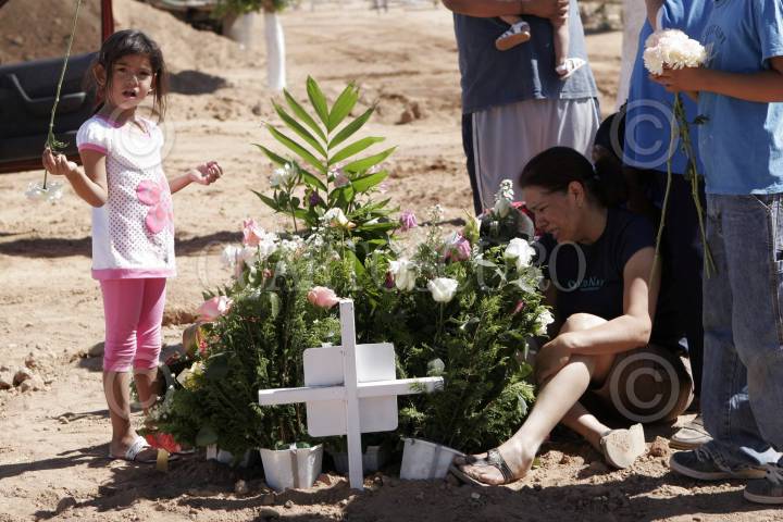 HERMOSILLO, SONORA 07JUNIO2009.- Una madre no identificada llora durante el sepelio de su hijo, quien falleció en el incendio ocurrido en una guardería del centro de la ciudad. FOTO: IVAN STEPHENS/CUARTOSCURO.COM