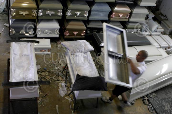 HERMOSILLO, SONORA 07JUNIO 2009.- Trabajadores de la empresa Ataúdes Laminados S. A. de C. V. trabajan horas extras para dar abasto a los pedidos de ataúdes que han hecho las funerarias luego de que se registrara un incendio en el que han perdido la vida 41 niños. FOTO: IVAN STEPHENS/CUARTOSCURO.COM