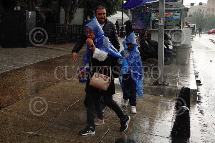 CIUDAD DE MÉXICO, 17JUNIO2025.- Capitalinos de resguardan de la lluvia en el primer cuadrante del Centro histórico ya que se ha formado la tormenta tropical Erick en aguas del océano Pacífico, frente al estado de Chiapas, lo que ocasionará lluvias intensas, rachas de viento fuertes y oleaje elevado en varios estados del país. FOTO: ANDREA MURCIA /CUARTOSCURO.COM