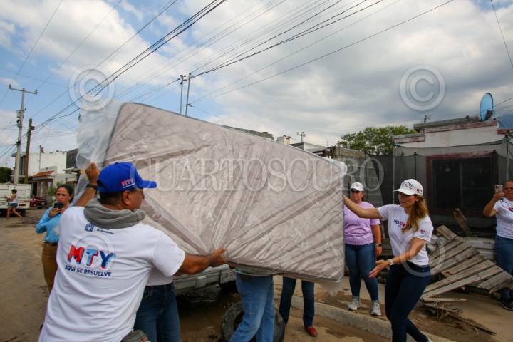 MONTERREY, NUEVO LEÓN, 11JUNIO2025.- Empleados del municipio de Monterrey, llevan colchones a afectados por las lluvias que se registraron esta tarde al poniente de la ciudad en calles de la colonia La Alianza. FOTO: GABRIELA PÉREZ MONTIEL / CAURTOSCURO.COM