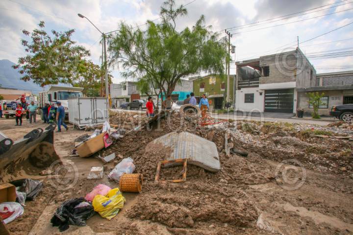 MONTERREY, NUEVO LEÓN, 11JUNIO2025.- Debido a las intensas lluvias que se registraron al poniente de la ciudad esta tarde; diversas calles de la colonia La Alianza fueron afectadas por lodo y piedras que arrastraron objetos y crearon montañas de tierra. El ayuntamiento de la ciudad se encuentra ayudando a los afectados con maquinaria. FOTO: GABRIELA PÉREZ MONTIEL / CAURTOSCURO.COM
