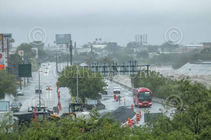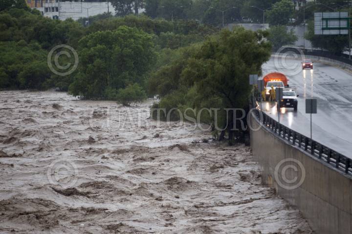 MONTERREY, NUEVO LEÓN, 20JUNIO2024.- La tormenta tropical Alberto entró al estado de Nuevo León este jueves por la madrugada, donde se esperan lluvias hasta el día sábado como el remanente de depresión tropical. Algunos cruces con riesgo de inundación han sido cerradas a la vialidad. Según informes de la CONAGUA, las presas del estado han crecido considerablemente, la Presa de la Boca tiene un llenado del 90% y se estima abrir sus compuertas en las próximas horas, así mismo el incremento se registra en las presas Cerro Prieto, El Cuchillo y el Cuchillo II. FOTO: GABRIELA PÉREZ MONTIEL / CUARTOSCURO.COM