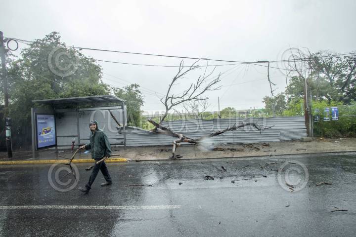 MONTERREY, NUEVO LEÓN, 08SEPTIEMBRE2025.- Trabajadores de limpieza de Monterrey, retiran basura de las calles, en el centro de Monterrey. Las precipitaciones de lluvia que se han hecho presente en el estado de Nuevo León, principalmente en la zona metropolitana de Monterrey, han provocado diversas afectaciones, cierres viales y daños en los diferentes municipios. Durante el día han realizado diferentes cierres al tránsito vehicular en avenidas como Gonzalitos, Pablo Livas, entre otras en el municipio de Escobedo. Asimismo, algunos vehículos han sido arrastrados por la corriente en el municipio de Santiago, sin víctimas mortales. La Universidad Autónoma de Nuevo León, optó por las clases en línea durante el turno vespertino y nocturno para salvaguardar la integridad de los estudiantes y maestros. FOTO: GABRIELA PÉREZ MONTIEL / CUARTOSCURO.COM