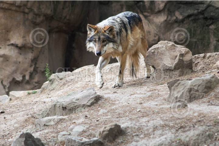 "Rhi”, lobo mexicano de siete años y padre de los cinco lobitos mexicanos que nacieron en el Bosque de Chapultepec el pasado 24 de abril.
