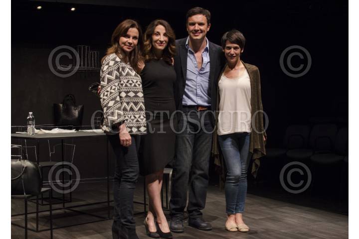 MÉXICO, D.F., 10AGOSTO2015.- Esta noche se estrenó la obra "Lobos por Corderos" de Reynols Robledo, en el Círculo Teatral de la colonia Condesa. Previamente se realizó una alfombra roja en donde se presentaron algunas celebridades que acudieron al estreno de la puesta en escena. La obra se logró a través de la plataforma fondeadora, lo que significa que fue realizada con recursos de la sociedad civil. En la imagen, Mariana Garza, Mónica Huarte, Fernanda Borches y Alejandro de la Madrid, protagonistas de la obra. FOTO: MARÍA JOSÉ MARTÍNEZ /CUARTOSCURO.COM