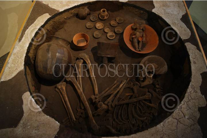 MÉXICO, D.F., 23JULIO2010.- Reconstrucción del entierro de un individuo adulto localizado en el barrio de la ventanilla. FOTO: INAH/CUARTOSCURO.COM