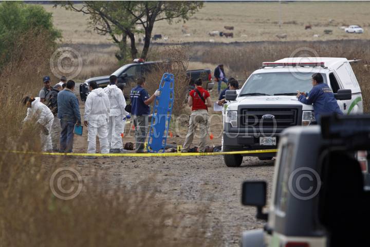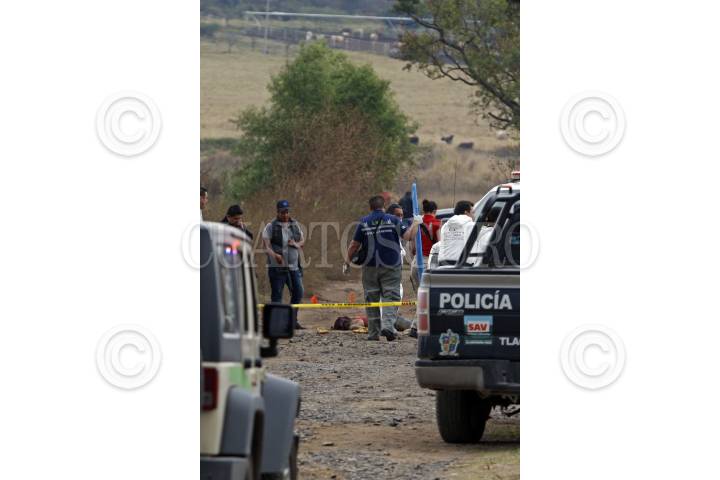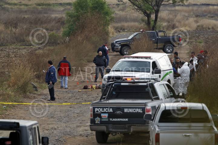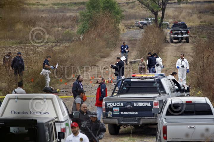 TLAQUEPAQUE, JALISCO. 13FEBRERO2015.- En una brecha conocida como la Noria, en las inmediaciones del Cerro del Gato, en el municipio de San Pedro Tlaquepaque, fueron localizados los cuerpos de cuatro personas que presentaban huellas de violencia, las victimas corresponden a dos mujeres y dos hombres, mismos que presentaban quemaduras y múltiples contusiones, hasta el lugar arribo personal de la Fiscalía General del Estado, policías municipales, así como peritos del Instituto Jalisciense de Ciencias Forenses (IJCF), quienes se encargaron del levantamiento de evidencias tanto como de los cuerpos. FOTO: FERNANDO CARRANZA GARCIA / CUARTOSCURO.COM