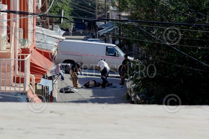 CIUDAD JUÁREZ, CHIHUAHUA, 29JUNIO2017.- Fueron localizados dos cadáveres en la calle Fidel Ávila a una cuadra de la escuela primaria Revolución. Agentes policíacos afirman que ambos cuerpos presentaban señales de tortura, aunque no se determinó de inicio si tenían heridas producidas por proyectiles de arma de fuego. FOTO: NACHO RUIZ /CUARTOSCURO.COM