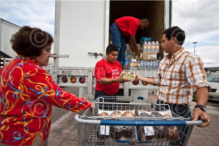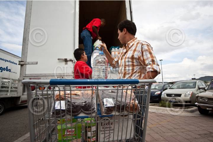 QUERÉTARO, QUERÉTARO, 11JULIO2010.- Este día salieron trailers llenos de alimentos no perecederos, agua y medicinas a Nuevo León en apoyo a los damnificados por los estragos de las tormentas de la temporada. La colecta organizada por el DIF estatal logró colectar junto con apoyo de la ciudadanía hasta 120 toneladas de enseres. FOTO: DEMIAN CHÁVEZ/CUARTOSCURO.COM