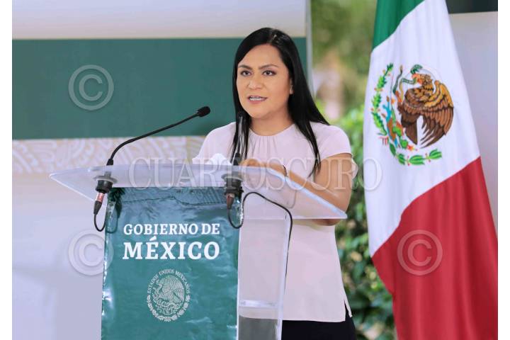 Ariadna Montiel Reyes, subsecretaria de Desarrollo Social y Humano, durante la Evaluación de Programas Integrales para el Bienestar, Universidad del Papaloapan