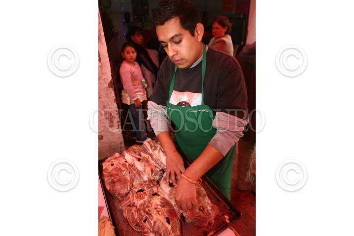 MÉXICO, D.F., 23DICIEMBRE2009.- La familia Montes de Oca trabajan arduamente en la elaboración de cenas navideñas en la colonia Vasco de Quiroga, esta tradición es llevada a cabo desde años atras. El lomo, pierna enchilada, costillas a la bbq, pavos y ensaladas son horneadas desde 24 horas antes, debido a la gran demanda que tienen en dicha colonia previo a la cena navideña. FOTO: SAÚL LÓPEZ/CUARTOSCURO.COM