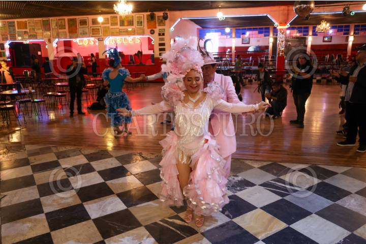 CIUDAD DE MÉXICO, 17JULIO2025.- Pachucos muestran su arte previo a la conferencia para anunciar las actividades por los 88 años del Salón Los Ángeles. Con una gran gala que se realizará el 09 de Agosto, este emblemático inmueble, al que le denomina la catedral del danzón, también ofrecerá música de otros géneros. Entre las bandas que se darán cita están; Triciclo Circus Band, Sr. Bikini, Tropikal Forever, Espanta Suegras & Insulini, entro otros. FOTO: MOISÉS PABLO/CUARTOSCURO.COM