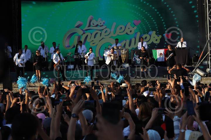 La agrupación mexicana de cumbias “Los Ángeles Azules” durante su presentación en el antes Parque de la Solidaridad ahora el Parque Luis Quintanar.
