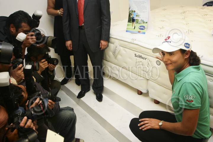 MÉXICO, D.F., 30OCTUBRE2008.- La golfista mexicana Lorena Ochoa aseguró que este año es el mejor año en su carrera como profesional, ya que ha superado muchos problemas para mantenerse como la número uno del ranking mundial; lo anterior lo declaró durante una conferencia de prensa en una tienda departamental, ubicada en Insurgentes Sur, para promocionar un colchón que lleva su nombre, así como firmar autógrafos y de paso hablar sobre el torneo Lorena Invitational, que se llevará a cabo en el Guadalajara Country Club del 13 al 16 de noviembre. FOTO: ISAAC ESQUIVEL/CUARTOSCURO.COM