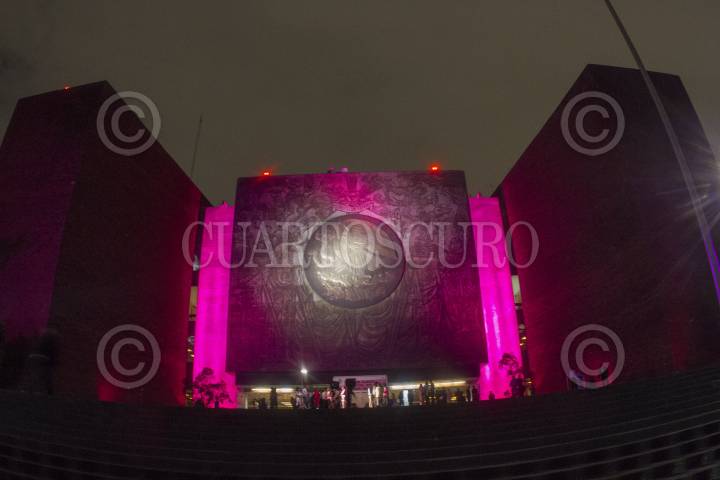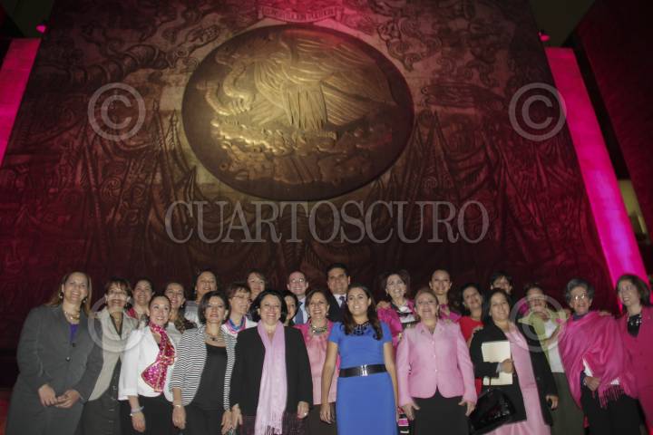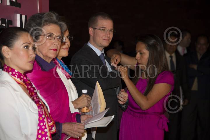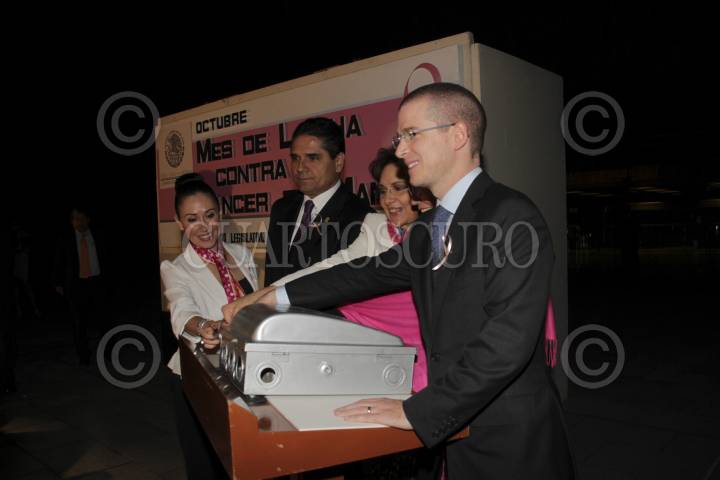 MÉXICO, D.F., 08OCTUBRE013.- Ricardo Anaya, presidente de la Mesa directiva de la Cámara de diputados, y Silvano Aureoles Conejo, presidente de la Junta de Coordinación Política en esa cámara, encendieron la iluminación de la fachada de ese recinto con el que los legisladores se unen a la "Conmemoración del mes de la Lucha contra el cáncer de mama" FOTO: JUAN PABLO ZAMORA /CUARTOSCURO.COM