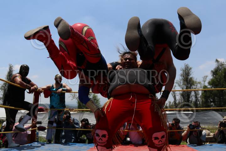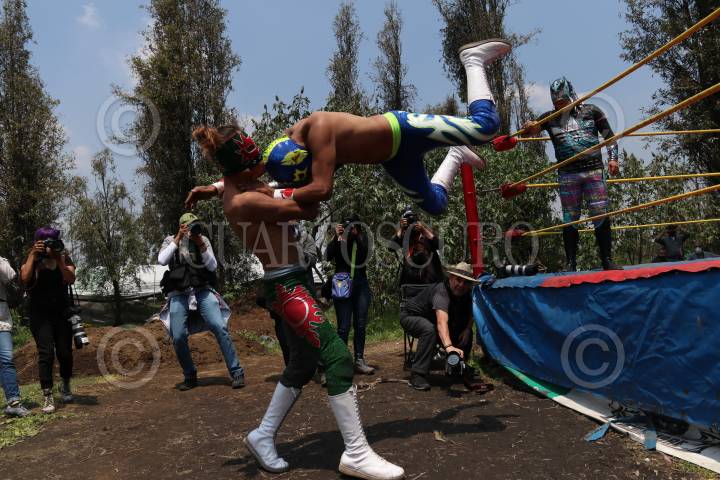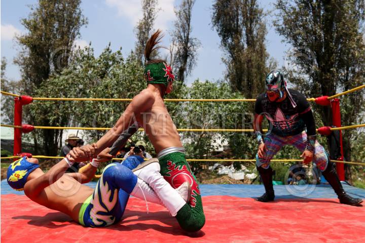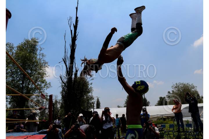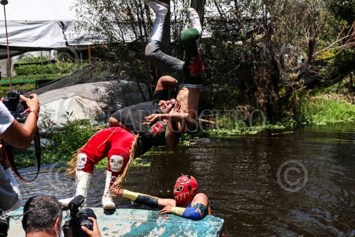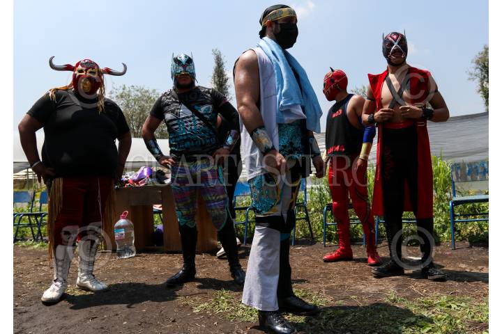 Las Chinampa Luchas son la modalidad en que los gladiadores de la Arena Olivares, en la alcaldía de Xochimilco, mantienen encendida la llama del deporte durante la pandemia por Covid-19.