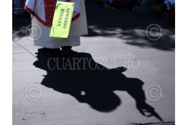 MÉXICO, D.F., 19FEBRERO2010.- Un letrero con el nombre del minero Armando Rosales Hernández, quien murio hace cuatroa años tras el colapso de la mina de carbón de Pasta de Conchos, propiedad de Grupo México, aparece en solitario durante la celebración de una misa en su memoria y la de los otros 64 compañeros que perecieron en esta tragedia. Solamente se lograron rescatar 2 cuerpos de los 65, luego de que en su momento la Secretaría del Trabajo, bajo la dirección de Javier Lozano, suspendiera los trabajos para su recuperación. Hasta la fecha no se le han fincado responsabilidades a ninguno de los dueños del Grupo México, propietarios de este yacimiento. FOTO: MOISÉS PABLO/CUARTOSCURO.COM