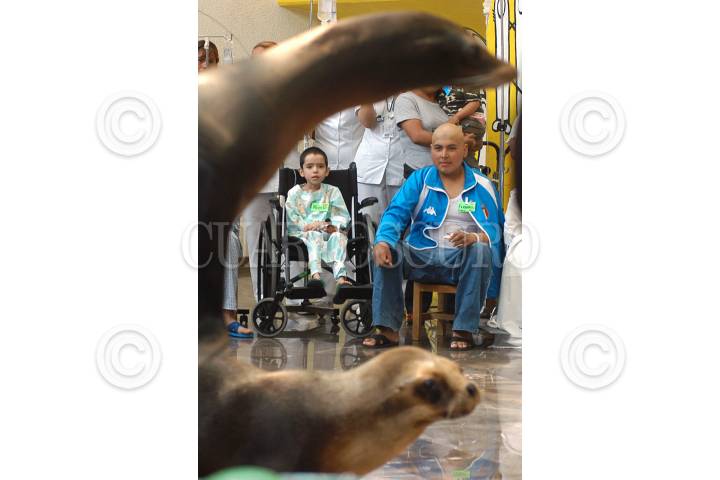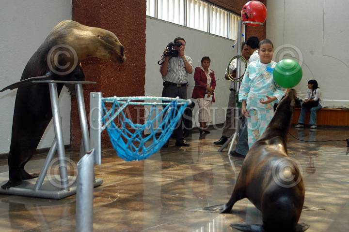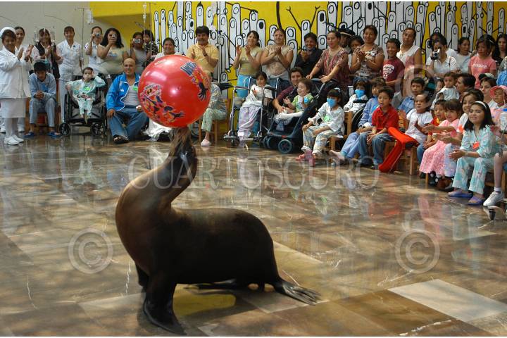 MEXICO D.F. 09MAYO2006.- Se presento un espectáculo de focas en la recepción del Hospital Infantil de México Federico Gómez para divertir a los pacientes internados. Durante varios minutos los niños olvidaron sus padecimientos. Esta actividad ayuda a una pronta recuperación de los pacientes. FOTO: Germán Romero/CUARTOSCURO.COM