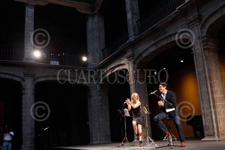 MÉXICO, D.F., 25MAYO2011.- Los actores Edith Gonzalez y Alberto Estrella leyeron un fragmento del libro "Los recuerdos del porvenir" de la escritora Elena Garro en el antiguo Palacio del Arzobispado como parte de las actividades del programa "Leo... luego existo". FOTO: IVAN STEPHENS/CUARTOSCURO.COM