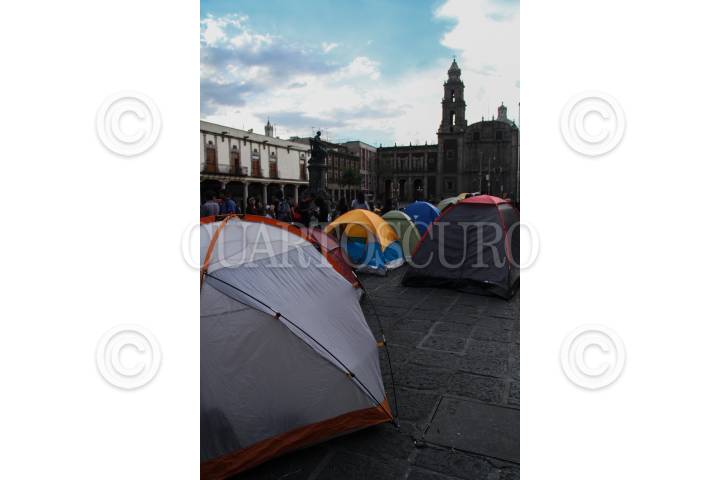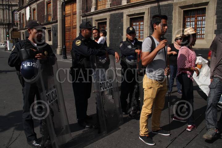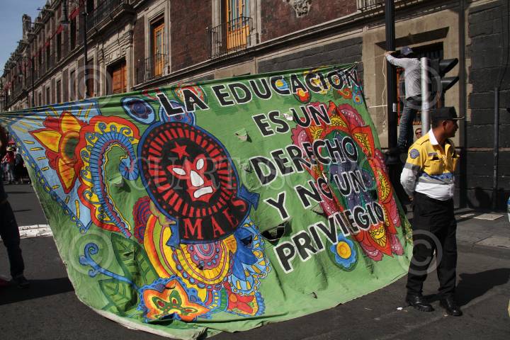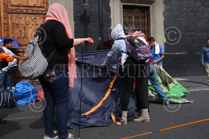 MÉXICO, D.F. 27JULIO2015.- Jóvenes estudiantes integrantes del Movimiento de Alumnos Excluidos de la Educación Superior, realizaron una marcha hacia las instalaciones de la Secretaria de Educación Pública rechazando el número de matrículas que se destinan para la Educación Superior. Al llegar a las instalaciones y no recibir respuesta de parte de las autoridades se decidieron por realizar un plantón, mientras los estudiantes armaban sus casas de campaña, la Secretaria de seguridad Pública desplegó a un gran número de granaderos para evitar y no permitir la libre manifestación de los estudiantes, quienes en cadena humana impidieron su paso. FOTO: ISABEL MATEOS /CUARTOSCURO.COM