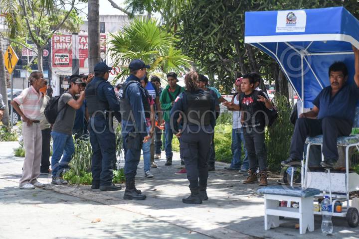 Trabajadores que ofertan servicios en la zona conocida como "El Crucero" fueron desalojados por elementos de seguridad para evitar aglomeraciones de personas y así extremar precauciones en las medidas sanitarias para contener la propagación de Covid-19