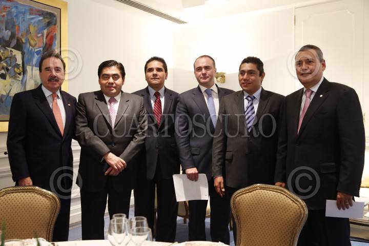 MÉXICO, D.F., 12JUNIO2013.- Los legisladores Emilio Gamboa Patrón, PRI, Luis Miguel Barbosa, PRD, Silvano Aureoles Conejo, PRD, Luis Alberto Villareal, PAN, Jorge Luis Preciado, PAN, y Manlio Fabio Beltrones, PRI, coordinadores de sus respectivas bancadas en la Cámara de Diputados y en la Senadores se reunieron para discutir los temas de la agenda legislativa. FOTO: CUARTOSCURO