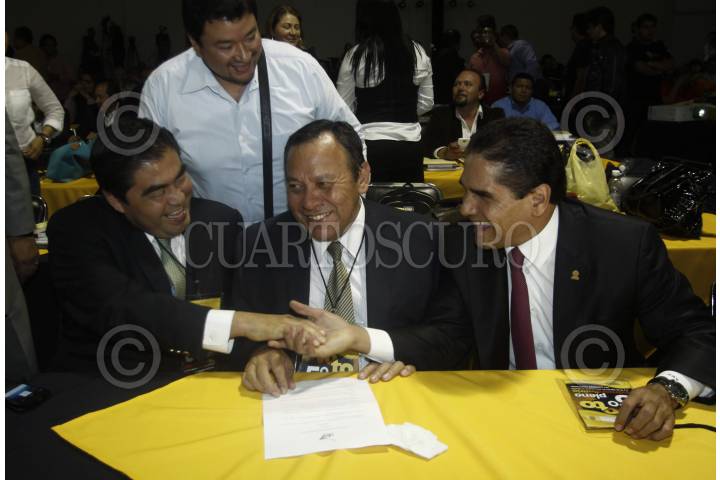 MÉXICO, D.F., 09AGOSTO2013.- Luis Miguel Barbosa, Jesús Zambrano y Silvano Aureoles Conejo durante la inauguración del 5to Pleno Extraordinario del VIII Consejo Nacional del PRD que se realiza este fin de semana en Expo Reforma. FOTO: RODOLFO ANGULO /CUARTOSCURO.COM