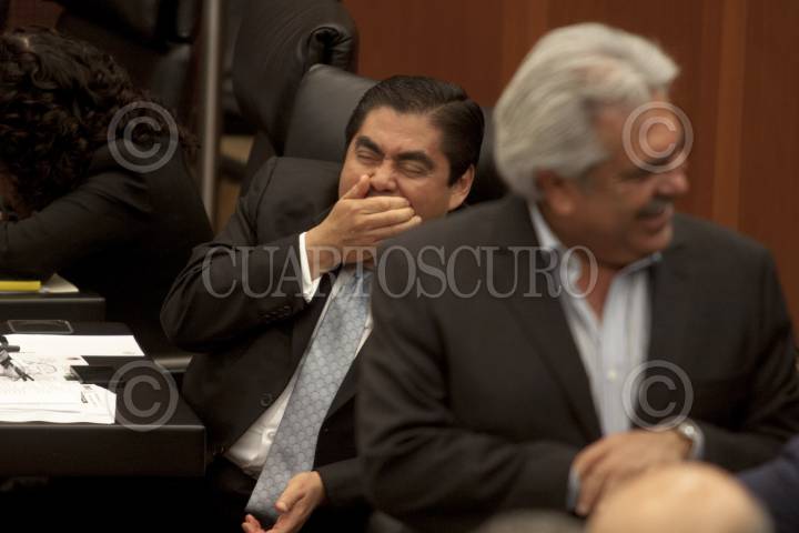 MÉXICO, D.F., 14AGOSTO2013.- Luis Miguel Barbosa, coordinador de los senadores del PRD, bosteza durante la sesión de la Comisión Permanente. FOTO: MOISÉS PABLO /CUARTOSCURO.COM