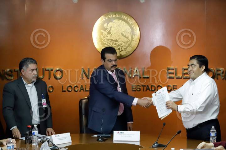PUEBLA, PUEBLA, 20MARZO2018.- Luis Miguel Barbosa se registró como candidato a la gubernatura de Puebla por la Coalición Juntos Haremos Historia conformada por los partidos MORENA, PT y PVEM, acompañado por Yeidckol Polevnsky, presidenta nacional de MORENA. FOTO: MIREYA NOVO /CUARTOSCURO.COM